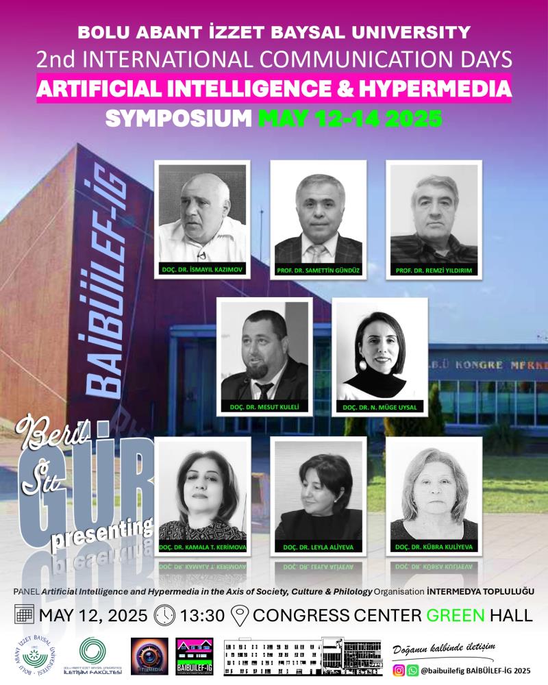 Bolu Abant İzzet Baysal Üniversitesi İletişim Fakültesi tarafından düzenlenen BAİBÜİLEF-İG 2025 - 2. Uluslararası Yapay Zekâ ve Hipermedya Sempozyumu kapsamında, farklı disiplinlerden değerli akademisyenlerin katılımıyla “Toplum, Kültür ve Filoloji Ekseninde Yapay Zekâ ve Hipermedya” başlıklı panel gerçekleştirilecektir.