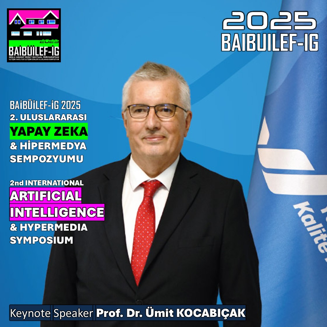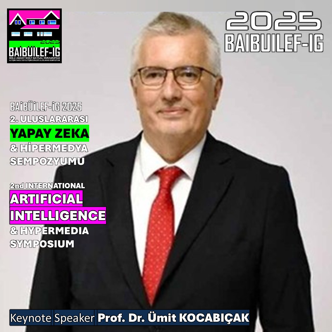 Yüksek Öğretim Kalite Kurulu Başkanı ve Sakarya Üniversitesi Bilgisayar ve Bilişim Bilimleri Fakültesi Öğretim Üyesi Prof. Dr.Ümit Kocabıçak "Kalite Çalışmalarında Yapay ZekaAlgoritmaları" konulu sunumu ile 12 Mayıs 2025 tarihinde BAİBÜİLEF-İG 2025 2. Uluslararası Yapay Zeka ve Hipermedya Sempozyumunun Keynote Konuşmacısı olarak aramızda yer alacak.