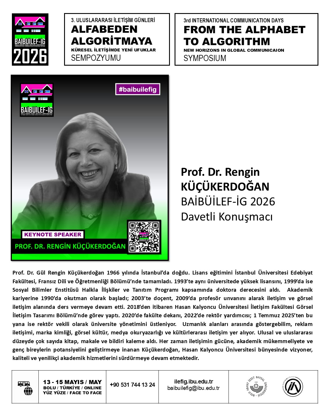 Prof. Dr. Gül Rengin Küçükerdoğan 1966 yılında İstanbul’da doğdu. Lisans eğitimini İstanbul Üniversitesi Edebiyat Fakültesi, Fransız Dili ve Öğretmenliği Bölümü’nde tamamladı. 1993’te aynı üniversitede yüksek lisansını, 1999’da ise Sosyal Bilimler Enstitüsü Halkla İlişkiler ve Tanıtım Programı kapsamında doktora derecesini aldı. Akademik kariyerine 1990’da okutman olarak başladı; 2003’te doçent, 2009’da profesör unvanını alarak iletişim ve görsel iletişim alanında ders vermeye devam etti. 2018’den itibaren Hasan Kalyoncu Üniversitesi İletişim Fakültesi Görsel İletişim Tasarımı Bölümü’nde görev yaptı. 2020’de fakülte dekanı, 2022’de rektör yardımcısı; 1 Temmuz 2025’ten bu yana ise rektör vekili olarak üniversite yönetimini üstleniyor. Uzmanlık alanları arasında göstergebilim, reklam iletişimi, marka kimliği, görsel kültür, medya okuryazarlığı ve kültürlerarası iletişim yer alıyor. Ulusal ve uluslararası düzeyde çok sayıda kitap, makale ve bildiri kaleme aldı. Her zaman iletişimin gücüne, akademik mükemmeliyete ve genç bireylerin potansiyelini geliştirmeye inanan Küçükerdoğan, Hasan Kalyoncu Üniversitesi bünyesinde vizyoner, kaliteli ve yenilikçi akademik hizmetlerini sürdürmeye devam etmektedir.